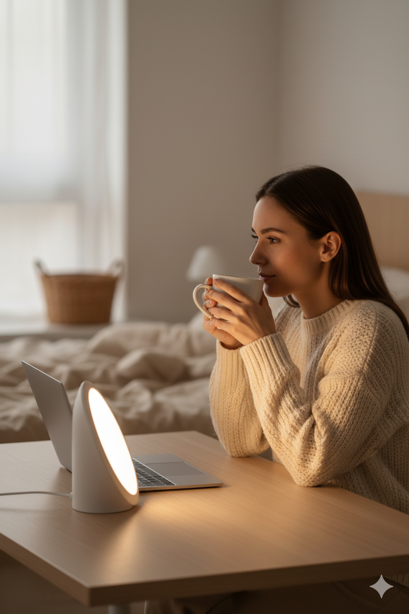 Résultat : ton corps se réadapte naturellement, tu te sens plus éveillée, plus stable émotionnellement et ton sommeil retrouve son équilibre, même quand la lumière du jour se fait rare.